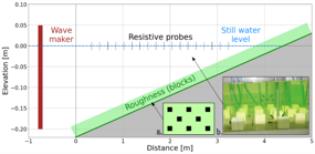 Summary – In the context of climate change and increasing pressures on coastal environments, this PhD project aims to improve the understanding of wave transformation and coastal risks in complex nearshore settings. Focusing on rocky and mixed sand-rock seabeds, the work involves the development of a high-resolution 3D wave model based on the SYMPHONIE code, enhanced with a "canopy" approach (Bulk Canopy Drag) to represent wave–seabed interactions in highly rough terrains. The modelling will be based on wave transformation measurements on idealized rough bottoms from wave flume experiments. These experiments will simulate the propagation of irregular waves over rough beds, including both block-like idealized roughness and 3D topographies with various bottom statistic metrics. The objective is to explore the influence of different types of bottom roughness on wave energy dissipation and coastal runup, contributing to more accurate predictive tools for coastal adaptation.